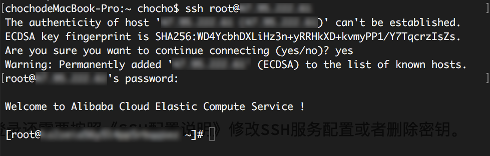 如果已经在控制台启用过密钥,使用账号密码登录还需要按照《SSH配置说明》修改SSH服务配置或者删除密钥。